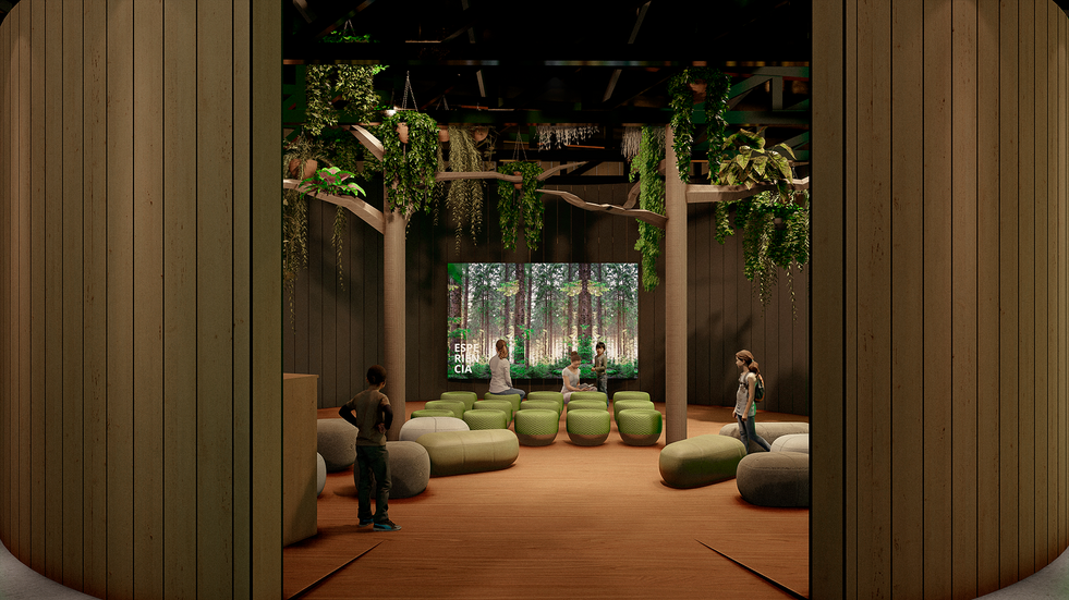 O projeto do Caracol se constitui como um programa de visitas e busca proporcionar ao expectador uma experiência interativa. Pensando no conceito de sustentabilidade, a madeira é o principal elemento da construção, indo desde o acabamento até o mobiliário. A forma circular combinada com os diferentes espaços criam uma imersão, permitindo diversas investigações do espaço. A premissa da concepção estrutural e a forma orgânica foram os principais desafios deste projeto executivo. Além disso, há uma área externa de apoio com um café e espaço aberto.